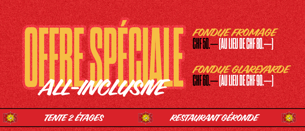 Offre spéciale All-Inclusive : avant le match, venez partager un moment convivial autour d’une fondue tout compris (entrée-plat-dessert et consommations pendant le repas et le match) à prix spécial :