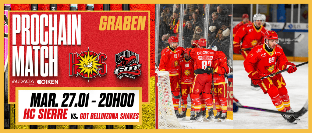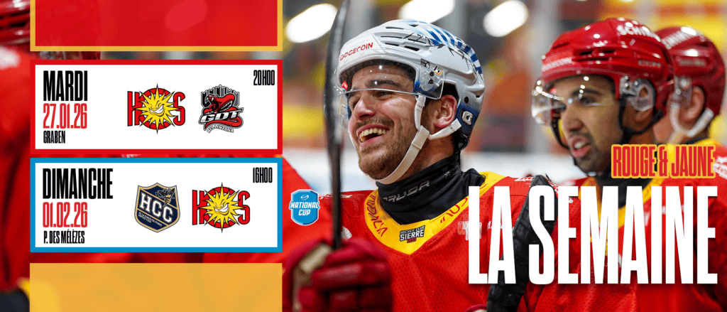 Avant la pause du calendrier, une semaine exceptionnelle s’annonce pour la famille rouge et jaune. Dès demain à 20h00, l’équipe vous donne rendez-vous à Graben pour affronter les GDT Bellinzona Snakes. Vendredi, place au Gala des Rouge et Jaune, un moment fort de partage. Et dimanche 1er février à 16h00, l’équipe jouera une finale de la National Cup face au HC La Chaux-de-Fonds, avec l’envie et la détermination d’écrire l’histoire.