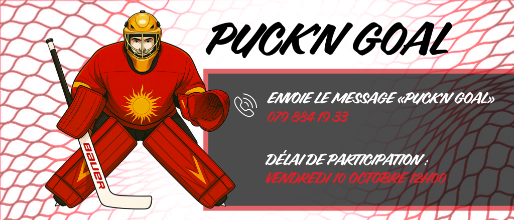 📲 Pour participer : envoie le message “Puck ’n’Goal” au 079 884 19 33 avant vendredi à 12h00.